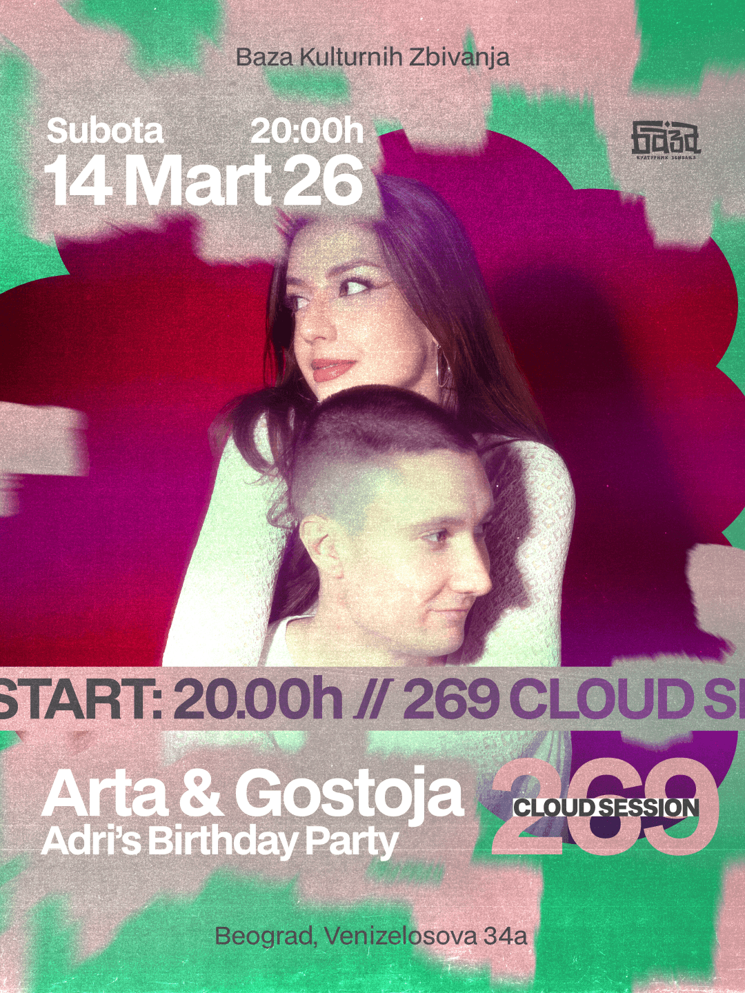 ADRI’S BIRTHDAY PARTY 🎂🎉 Svi znaju da Baza voli rođendanske proslave, a sada se već tradicionalno sredinom marta okupljamo u Bazi da proslavimo rođendan naše drage Adrijane i svi ste pozvani! Ali ove godine rođendan nije jedini povod za slavlje. Nakon 5 godina oblikovanja muzičke scene iza kulisa, Adrijana staje za DJ pult, po prvi put zvanično kao Arta! Pored nje rođendan će uveličati i oslonac joj pružiti Gostoja, član Mindless ekipe, poznato ime i redovan gost Baze Kulturnih Zbivanja. Razloga za slavlje ne manjka, i da ponovimo još jednom - svi ste pozvani! 🗓 14.03.2026. ⏳20:00 📍Venizelosova 34a 💸 Ulaz na slobodne donacije