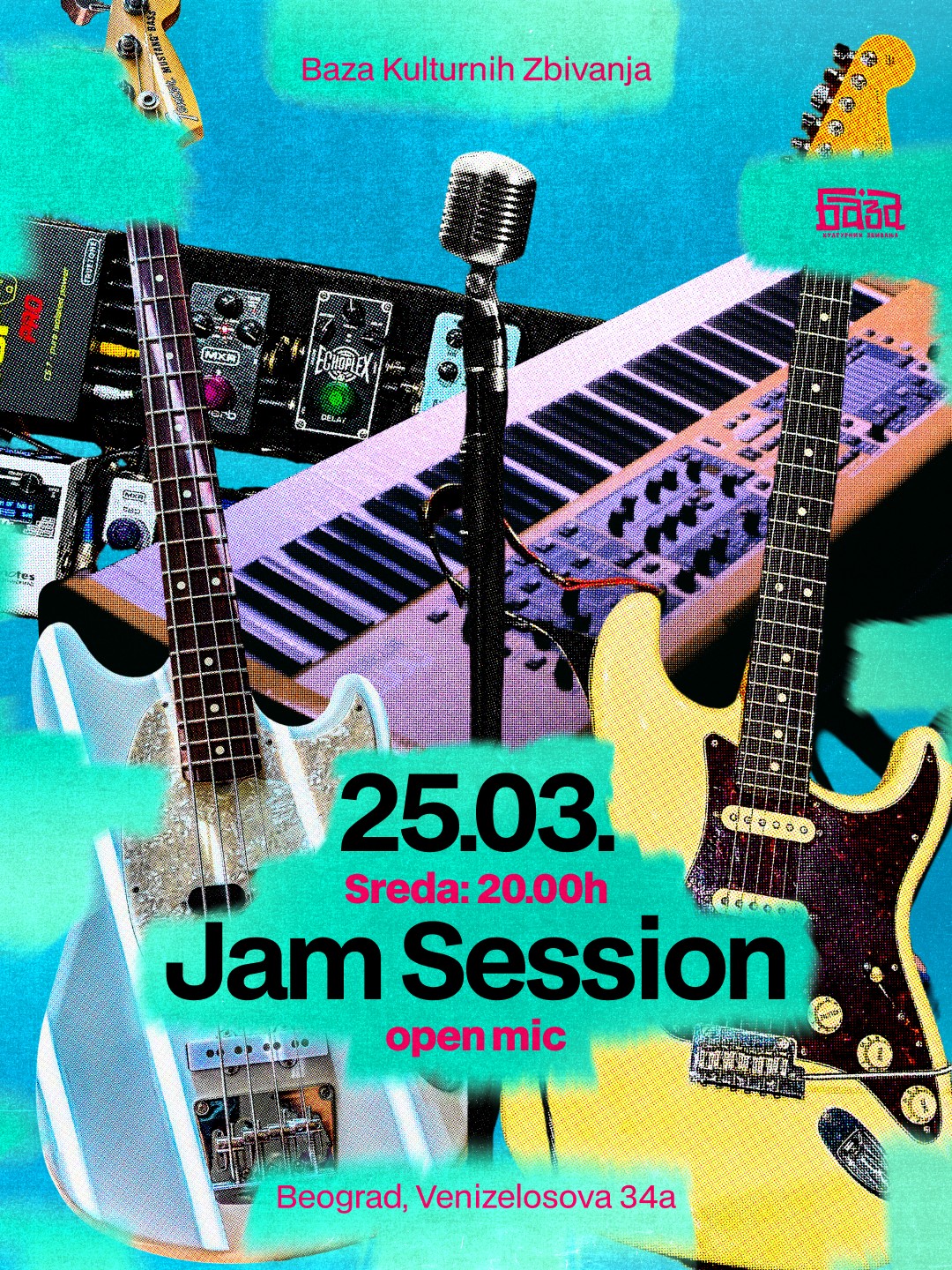 Kao i svake srede, 25. marta vas očekuje naša standardna JAM ekipa koja poziva sve ljude željne improvizacije da se pridruže! Ponesite vaš instrument! 📍 Baza Kulturnih Zbivanja Venizelosova 34a, Dorćol 🎟️ Ulaz na donacije