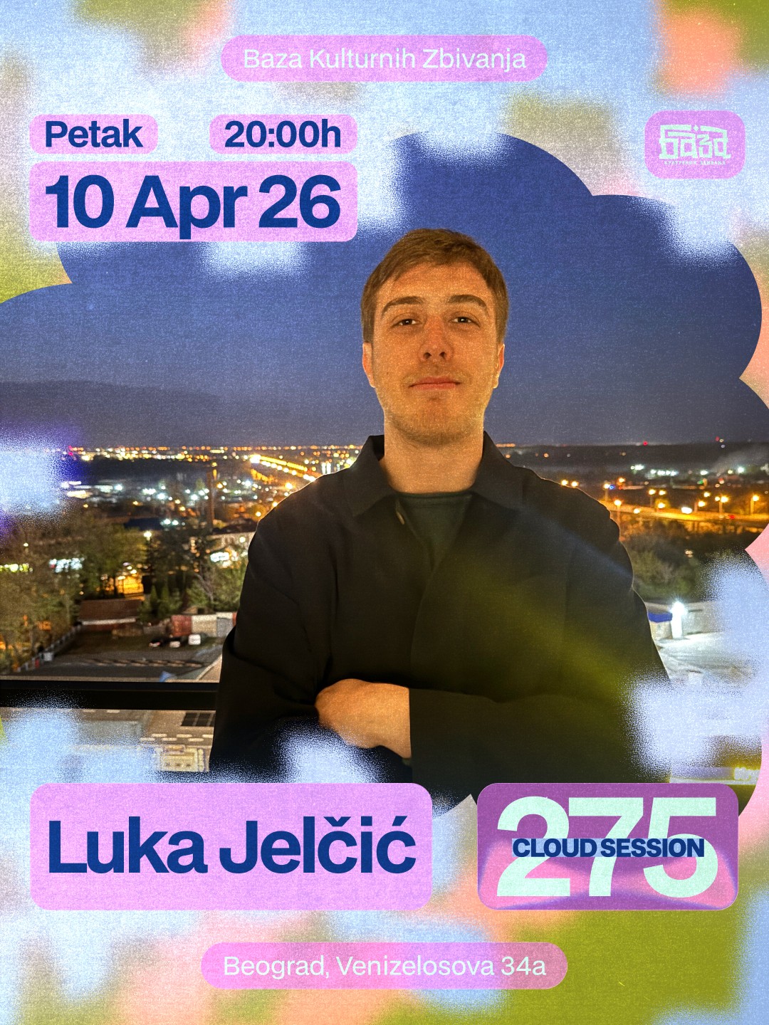 Ove nedelje u petak 10. aprila, Cloud Session pod rednim brojem 275 otvara Luka Jelčić koji je obnovio svoju kolekciju ploča i spreman je da nas njome natera da đuskamo do kasnih sati! Producent i vinyl DJ iz Srbije, Luka Jelčić gradi prepoznatljiv underground zvuk zasnovan na dubokom groove-u i fuziji techna, house-a i elektra. Njegove trake karakterišu hipnotički ritmovi i sirov, klupski osećaj koji prirodno vozi podijum. Kroz selekciju i produkciju, neguje autentičan izraz namenjen istinskim ljubiteljima klupske scene. 📍 Baza Kulturnih Zbivanja Venizelosova 34a, Dorćol 🎟️ Ulaz na donacije