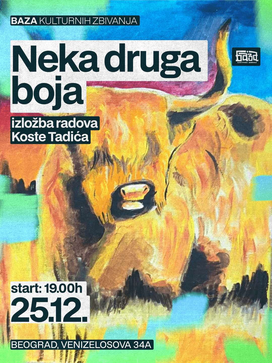 Predstavljamo izložbu mladog umetnika izuzetnog senzibiliteta, Koste Tadića, rođenog 11.09.2013. u Beogradu. Kosta svoje prve likovne korake pravi u ateljeu Artino, uz mentorku Svetlanu Ralević, sa kojom je razvio duboku emotivnu vezu prema umetnosti. Uprkos godinama, iza sebe već ima impresivan niz nagrada i međunarodnih priznanja: – 21st International Meeting of Juvenile Art, Evora – International Children Art Contest, Houston, Minnesota – Druga oktobarska nagrada na 56. Dečjem oktobarskom salonu – Opštinska nagrada Mali Pjer – Mali Montmartre, Bitolj – i mnoge druge Dva puta je učestvovao na Art Battle-u kao najmlađi učesnik, gde je u jednom ciklusu i pobedio. Trenutno se usavršava u Ateljeu Ivone Pleskonje. Izložba „Neka druga boja“ donosi svet viđen očima deteta koje već razmišlja kao umetnik, iskreno, hrabro i bez straha od izraza. 🖌 Pored slikarstva, Kosta voli fudbal i ronjenje, a njegova energija i radoznalost prelaze direktno na platno. Dobrodošli da upoznate jednu novu, drugačiju boju savremene umetnosti.