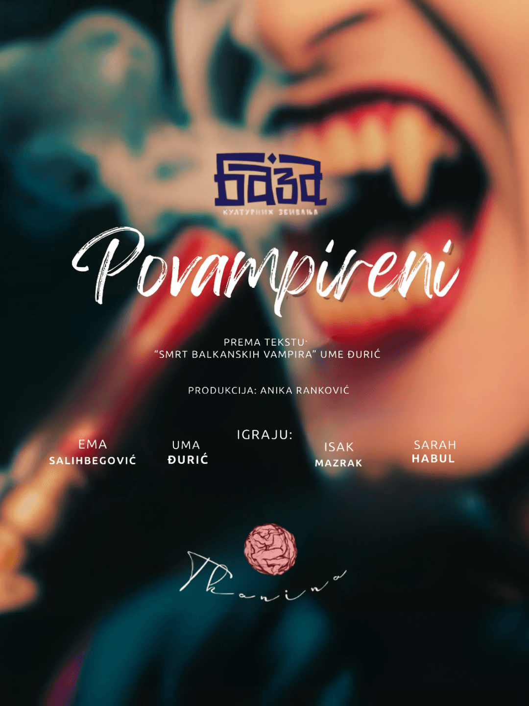 POVAMPIRENI “Vukota Milosavljević polazi na put. Prodaće nekretninu bogatom kupcu iz Bosne i osigurati bogatstvo za sebe i svoju voljenu Helenu. Posao se čini lakim, ali sve se menja kad Vukota otkrije - kupac je poslednji balkanski vampir, a njegovu Helenu, pored klasičnih fetiša na Relju i muška stopala, lože i zla bića iz pakla.” Ako volite Drakulu ili Nosferatua, ova parodija će vas uvrediti. Ako ne volite, opet će vas uvrediti. Ali kao svaki balkanski horor, moglo bi vas nasmejati do suza. 🎟 Karte: 700 din na ulazu NAPOMENA: Kapacitet publike je ograničen, pa je pohvaljeno da svoje mesto rezervišete porukom u instagram DM kako bi svima bio obezbeđen prostor za sedenje/stajanje.